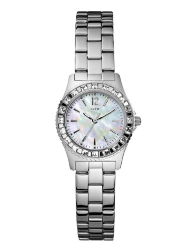Classic and feminine, this pretty watch captures your natural flair for timeless style. ? Analog function ? Stainless steel silver-tone case with crystal embellishments ? Mother-of-pearl dial ? Stainless steel silver-tone bracelet ? Waterpro Water Resistant ? 10 Year Limited Warranty Women's Accessories > Watches > Guess Watches